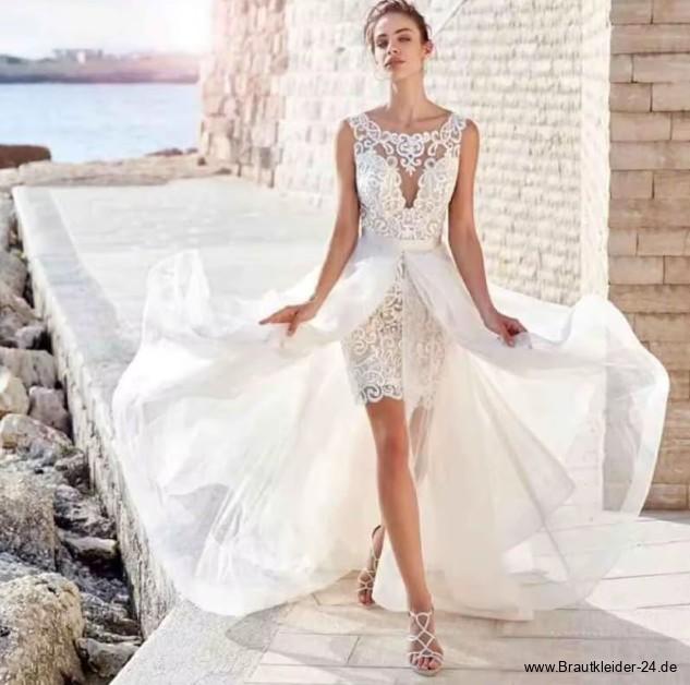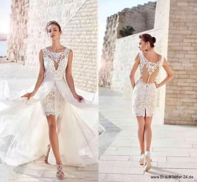 Einführung » Brautkleider Hochzeitskleider » Vokuhila Brautkleider » 2in1 Vokuhila Style Brautkleid Standesamtkleid Emmy aus Spitze