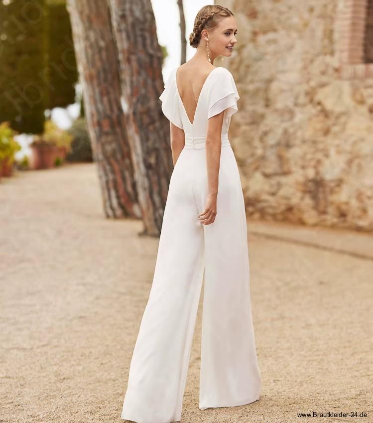 Einführung » Standesamtkleider 2025 » A Linie Chiffon Braut Overall Einteiler für den Standesamt Ines