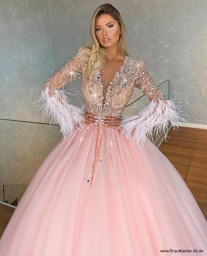 Einführung » Brautkleider Hochzeitskleider » A-Linie Langarm Brautkleid Ike in Zartrosa mit Strass Applikationen