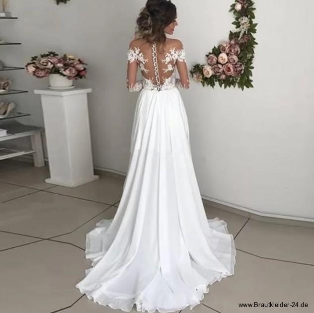 A-line Split Chiffon Standesamtkleid Evina mit Spitze in Weiß