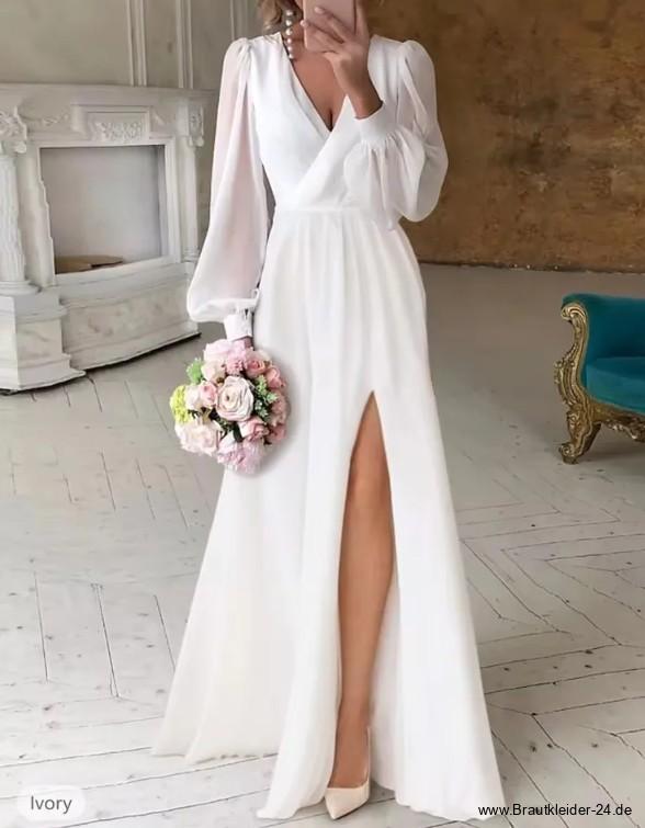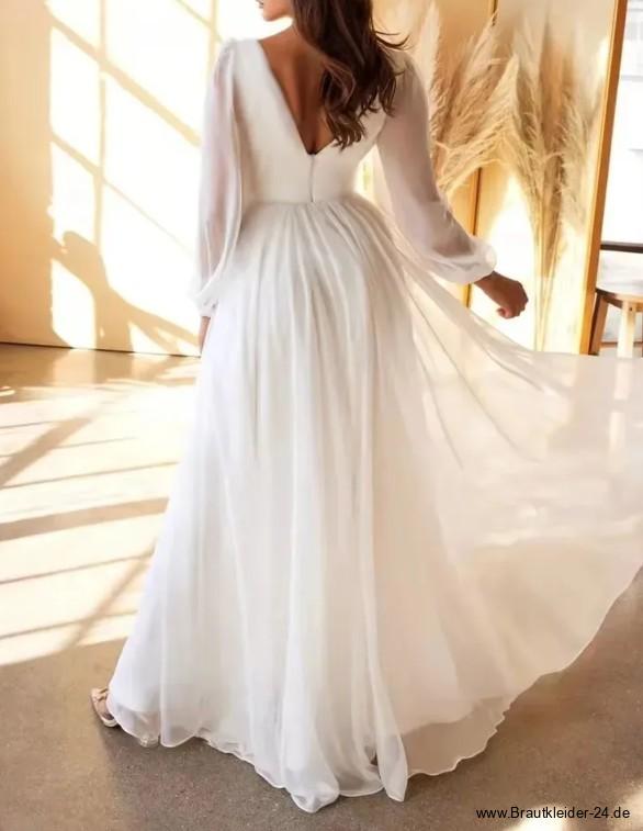 Chiffon Standesamtkleid Heike in Boho Style Weiß Grösse: 34 - 52 Material: Mischgewebe Style: A Linie Kleid für den Standesamt Länge: Lang Muster: Foto Ärmel: Kurzarm Ausschnitt: V Ausschnitt Jahreszeit: Frühling Sommer Herbst Winter