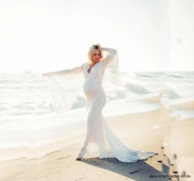 Romantisches Brautkleid Heide für Schwangere aus Spitze Silhouette: Etui Brautkleid Produkttyp: Brautkleid Hochzeitskleid Anlass: Hochzeit, Ball, Event, Kleider Länge: Brautkleid Bodenlang Dekoration:s.Foto Jahreszeit: Frühling Sommer Herbst...