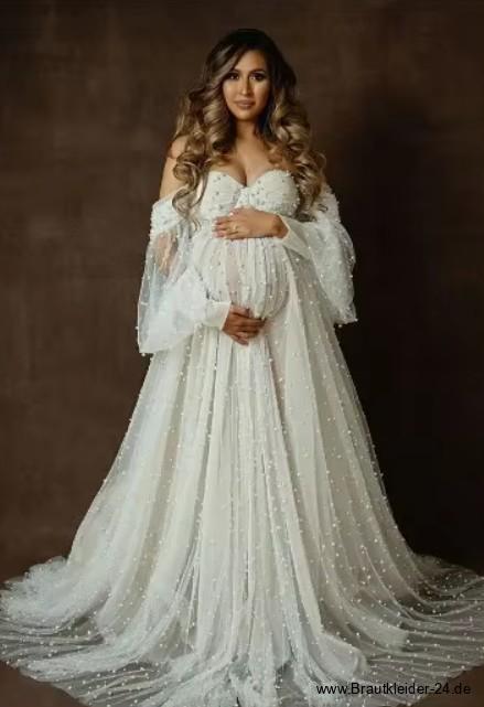 Schulterfreies Boho Brautkleid Helgrit für Schwangere Umstandsbrautkleid Silhouette: A Linie Brautkleid Produkttyp: Brautkleid Hochzeitskleid Anlass: Hochzeit, Ball, Event, Kleider Länge: Brautkleid Bodenlang Dekoration:s.Foto Jahreszeit: Frühling...