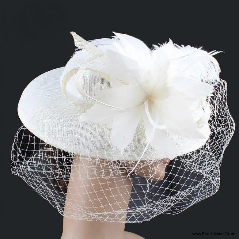 Fedora Hut Brauthut in Weiß Style: Klassisch Farbe: Foto Applikation: Tüll und Blume