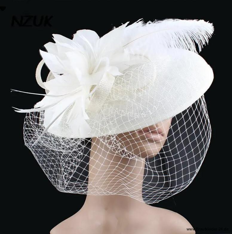Brauthut Beixing mit Tüll und Feder in Weiße Beige Rot oder Schwarz Style: Klassisch Farbe: Weiße Beige Rot oder Schwarz Applikation: Tüll und Feder