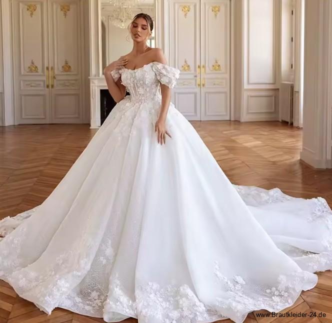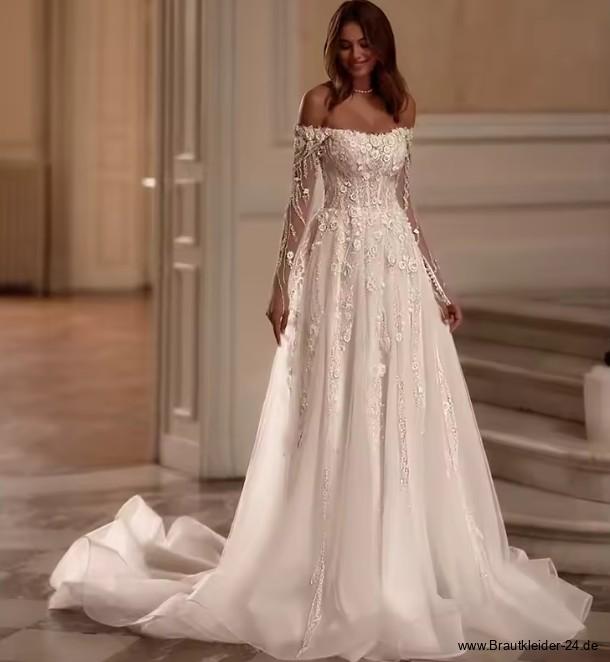Schulterfreies A Linie Brautkleid Ira mit Lingerie Oberteil und Blumen