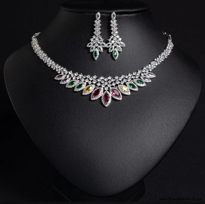 Brautschmuck Set Elisa Silber mit Bunte Steine