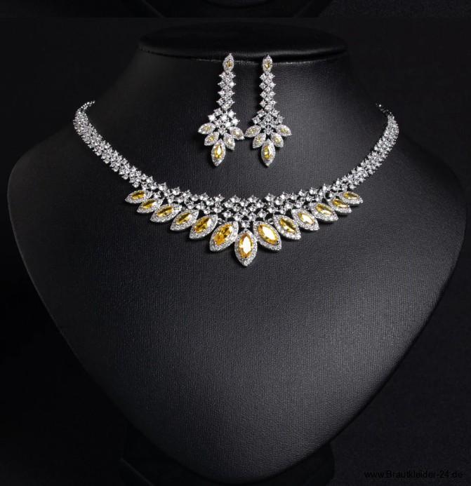 Brautschmuck Set Elisa Silber mit Gelbe Steine
