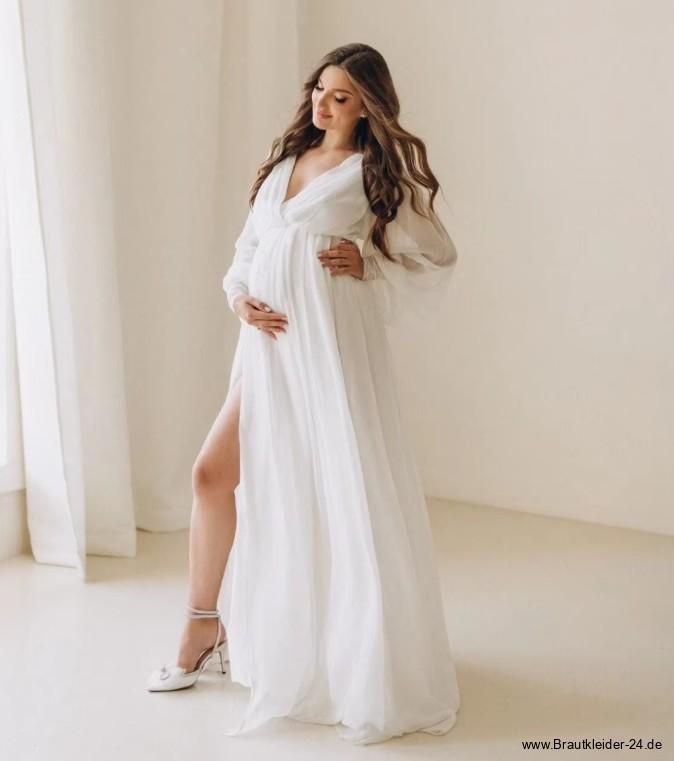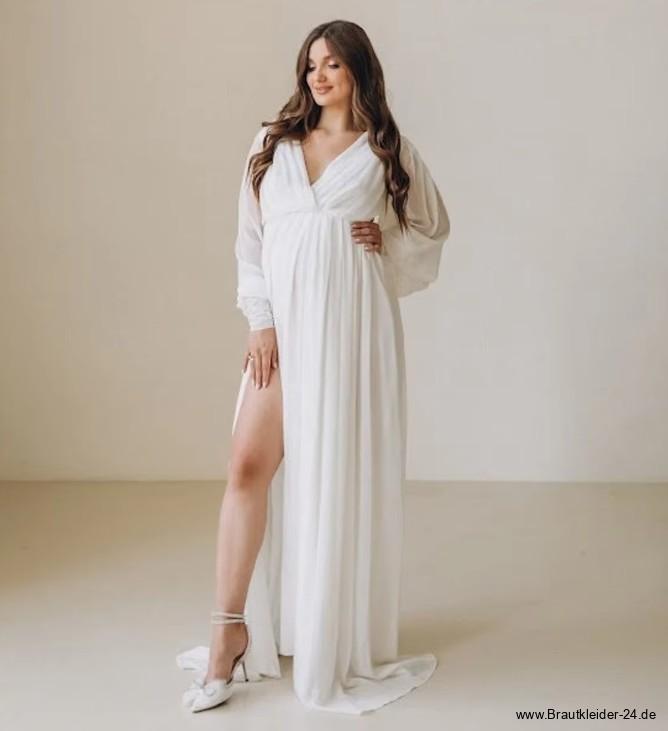 Chiffon Langarm Brautkleid für Schwangere Henrike