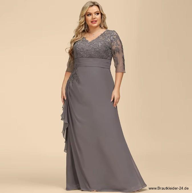 Empire Brautmutterkleid Henriette in Silbergrau mit Spitze