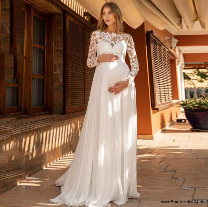 Empire Umstandsbrautkleid Heidi mit Ärmeln aus Spitze Hochzeitskleid für Schwangere
