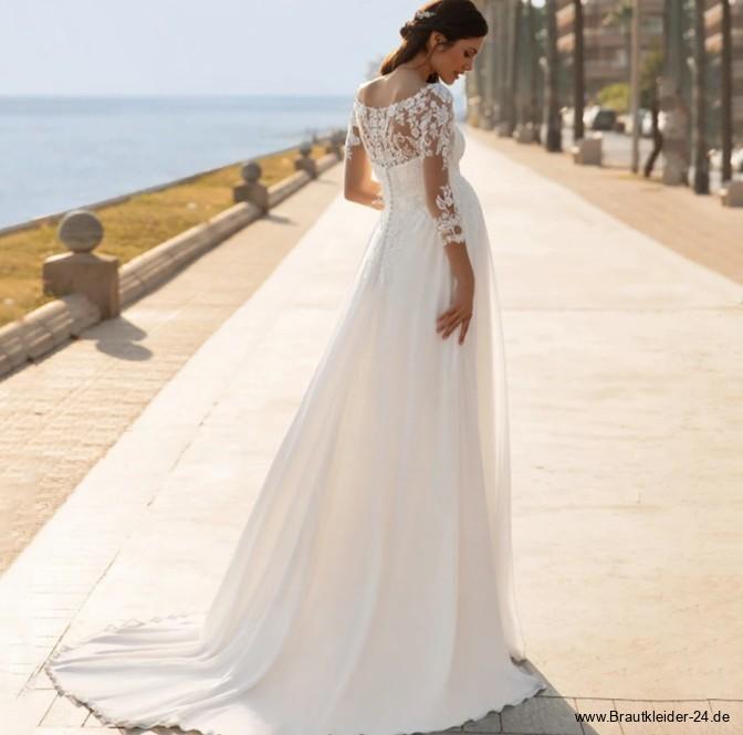 Einführung » Brautkleider Hochzeitskleider » Empire Umstandsbrautkleid Helin mit Ärmeln aus Spitze Hochzeitskleid für Schwangere