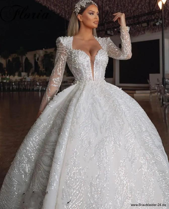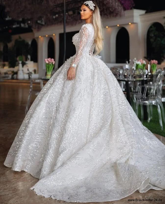 Einführung » Brautkleider Hochzeitskleider » Langarm Prinzessinnen Luxus Glitzer Brautkleid Iasmina mit Schleppe