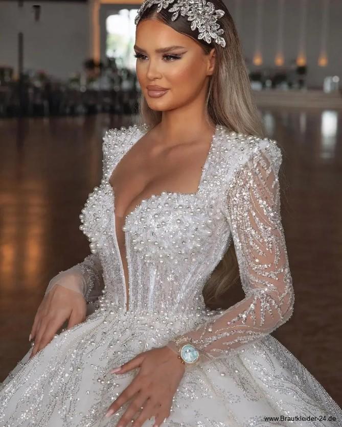 Langarm Prinzessinnen Luxus Glitzer Brautkleid Iasmina mit Schleppe