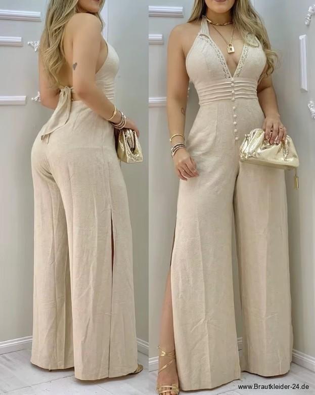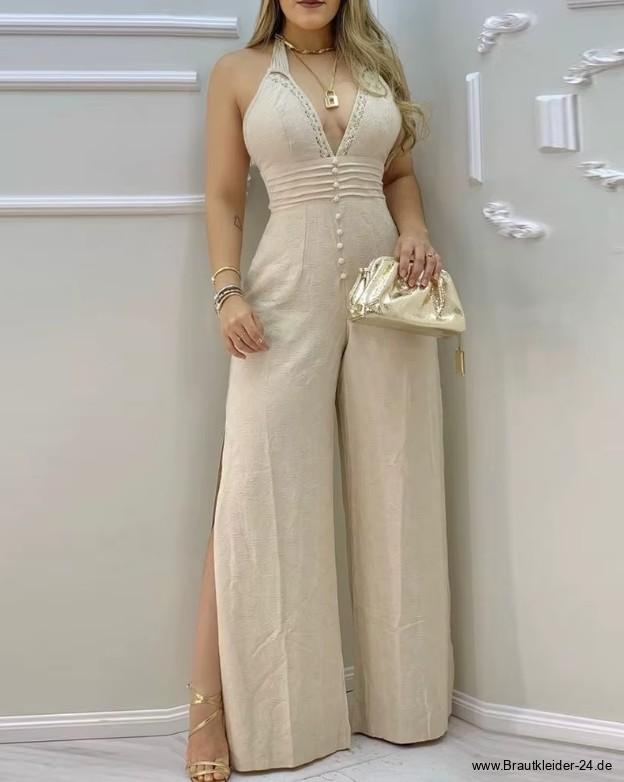 Neckholder Träger Overall Jampsuit Esmé für die Braut in Beige Creme