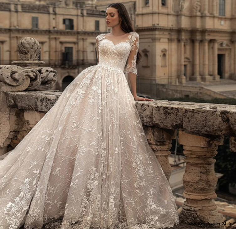 Prinzessinnen Brautkleid Ivonne in Elfenbein mit Schleppe und Stickereien