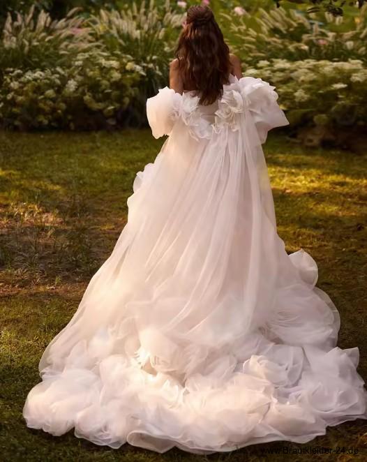 Schulterfreies Brautkleid Inessa mit Puffärmeln und Oversize Blumen