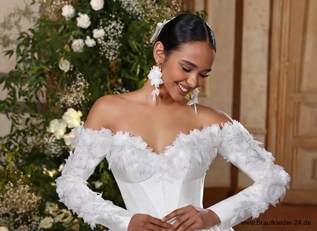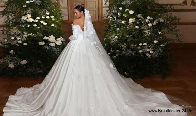 Einführung » Brautkleider Hochzeitskleider » Schulterfreies Langarm Prinzessin Brautkleid Insa mit Schleppe und Blumen
