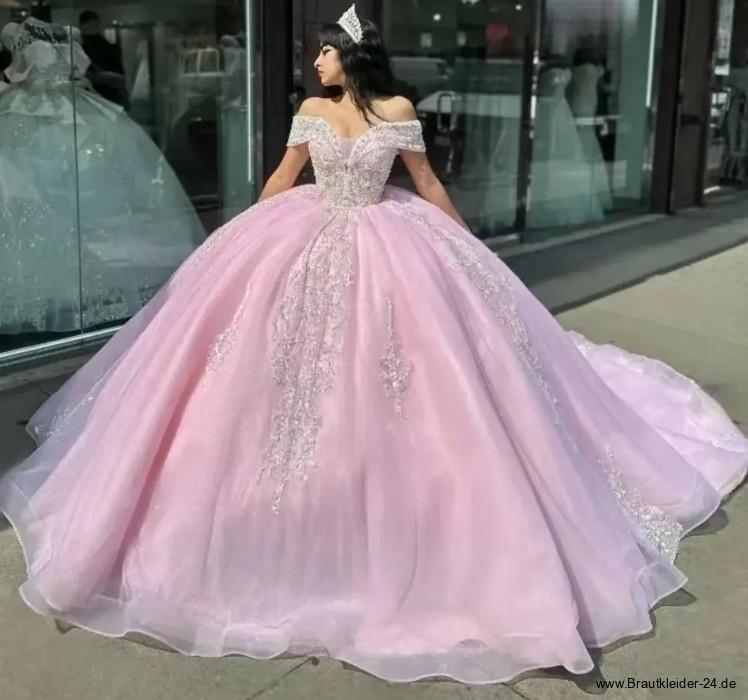 Einführung » Brautkleider Hochzeitskleider » Schulterfreies Prinzessin Brautkleid Inga in Rosa mit Spitze