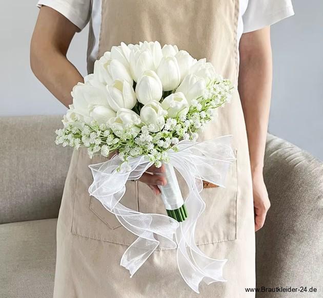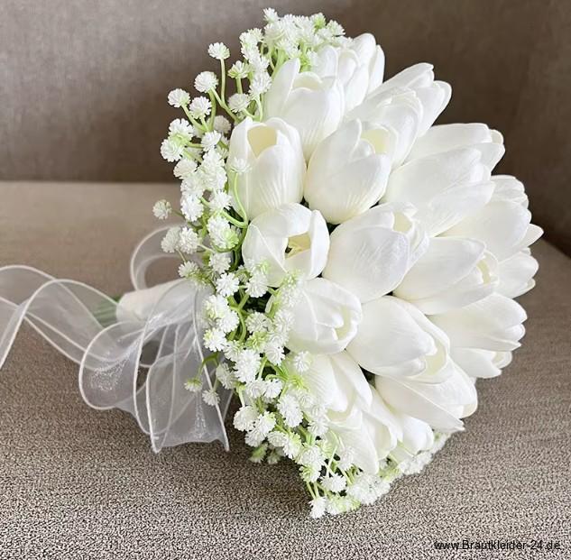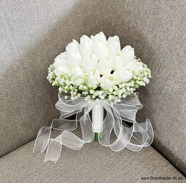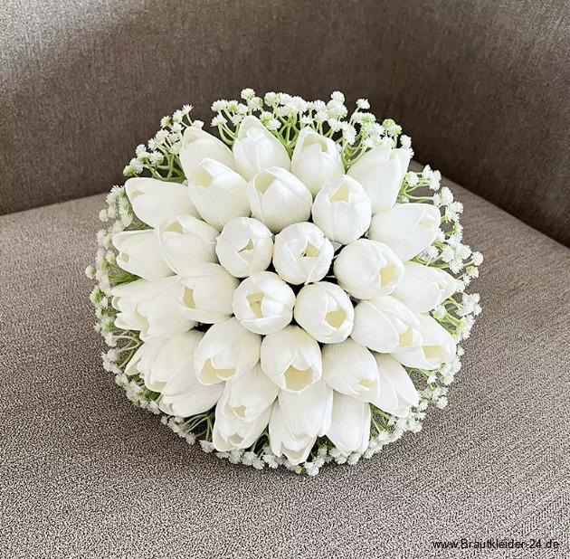 Einführung » Neuheiten 2025 - 2026 » Tulpen Brautstrauß Hochzeitsstrauß Rund in Weiß