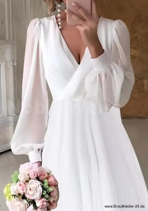 A Linie Sexy Vokuhila Brautkleid Cecilia mit V Ausschnitt